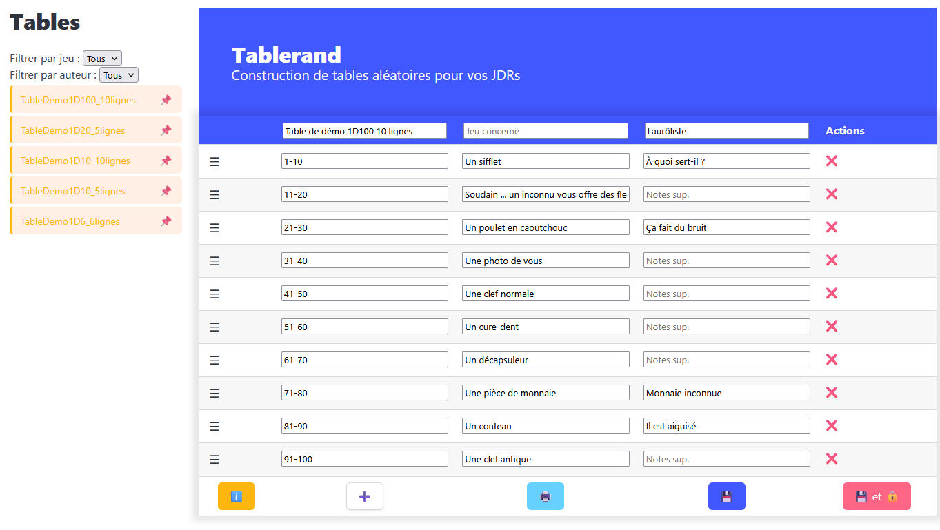 Créer et imprimer vos tables aléatoiresTablerand