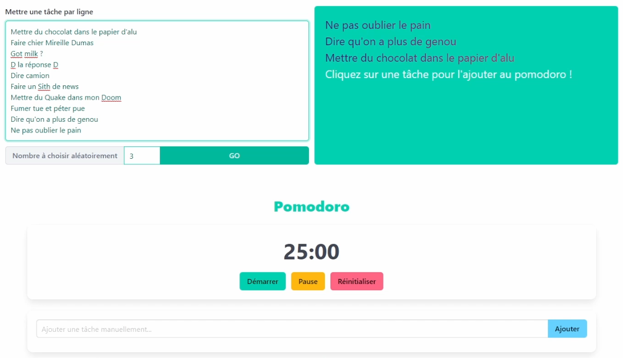 Sélecteur de tâche aléatoire et pomodoroPomotodo